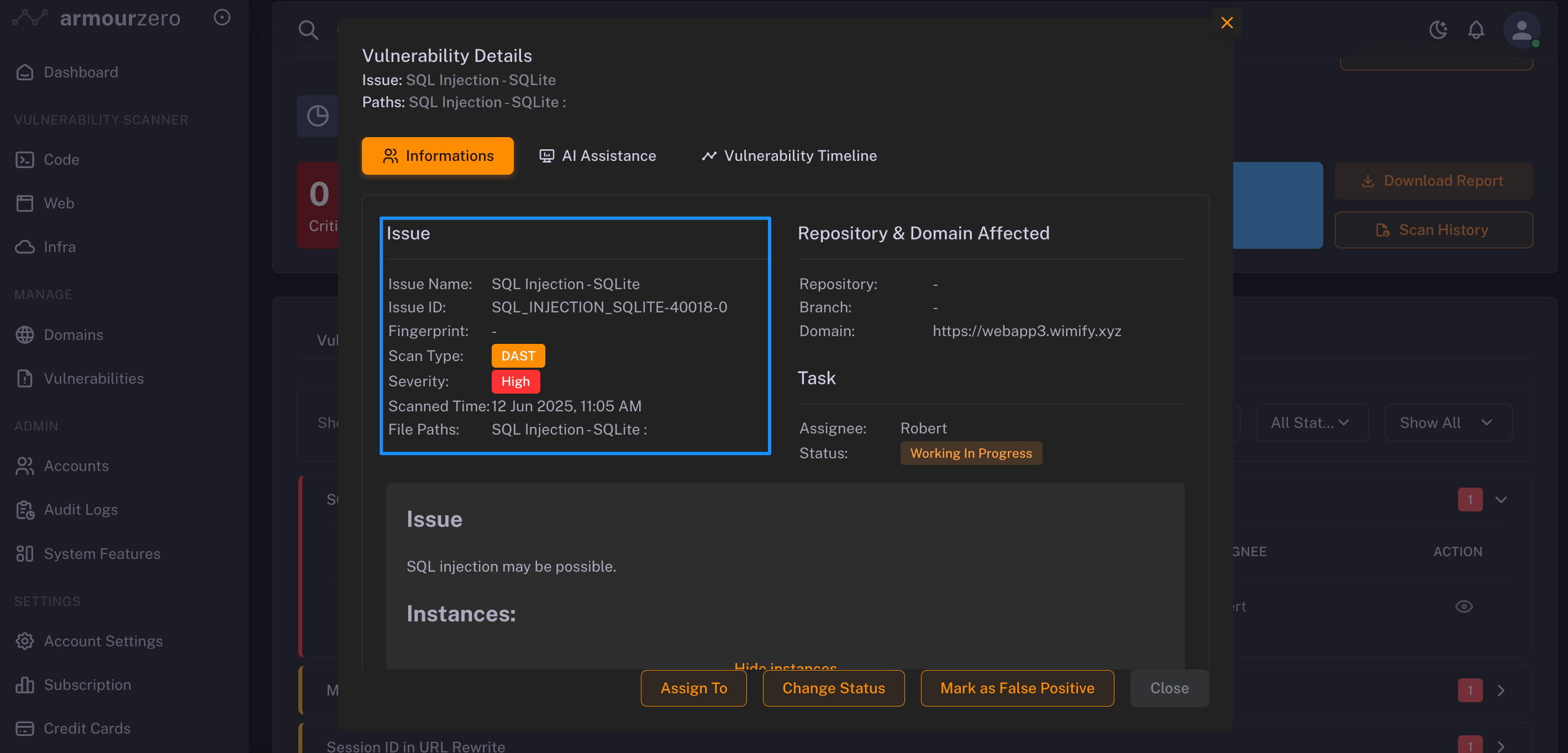 - Vulnerability related instances - which instances (sub-domain or web pages) of your web application that causing the vulnerability.