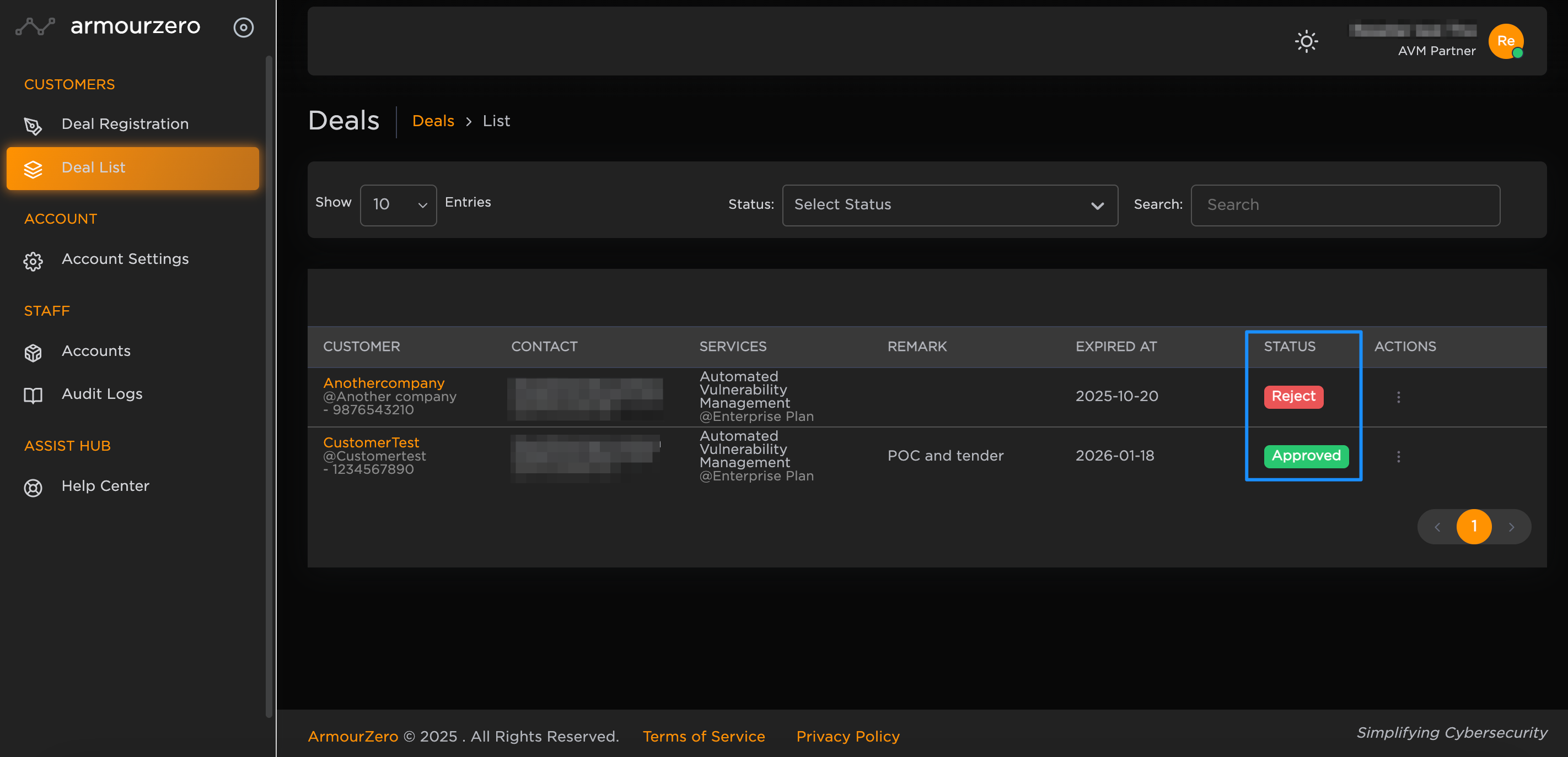 Notes: Look closely at the STATUS. Approved means you successfully deal registered the opportunity while Rejected means you denied on the opportunity. Do speak with our sales team if you have any further enquiries on this.