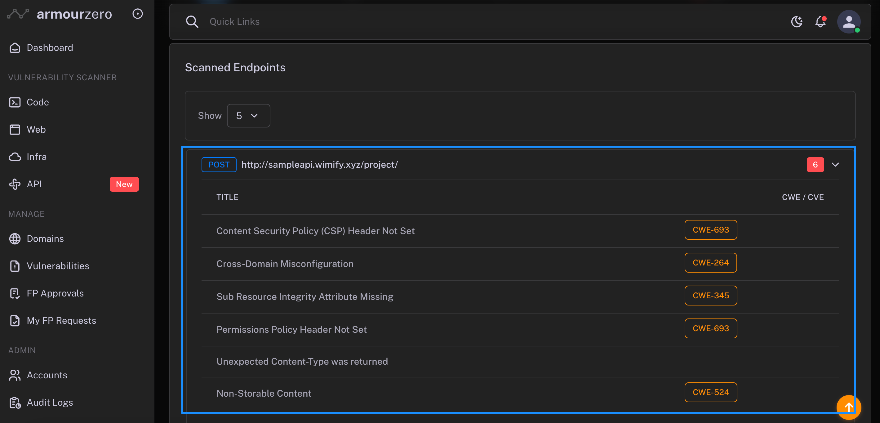 3. You can refer to the details of the scanned result per endpoints.